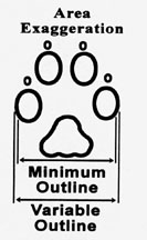 While the variable outline of a footprint may only be several millimeters wider than the minimum outline, those few millimeters have a large visual effect (see Area Exaggeration figure). The human eye sees area and area increases with the square of a linear measurement. In short, a few millimeters of width adds a lot of area to a footprint.